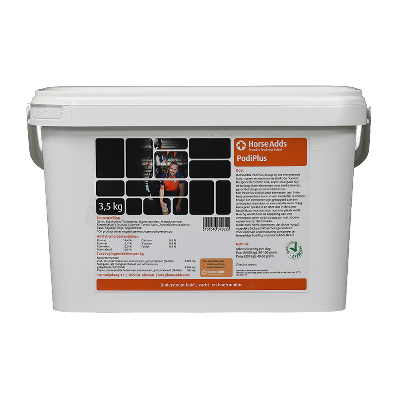 HorseAdds Biotine voor paarden bevat per 10 gram (dagdosering) maar liefst 25 mg biotine. Daarbij is HorseAdds Biotin niet opgevuld met suikers of andere onnodige zoetstoffen, maar gecombineerd met MSM, dat de huid en vacht conditie ondersteunt. Naast de zwavel vanuit de MSM, zijn ook de elementen koper, mangaan en zink erg belangrijke spelers voor gezonde en sterke hoeven. Daarom raden wij aan de Biotine te combineren met onze PodiPlus voor een optimaal resultaat, bekijk dus ook zeker ons Kees Alblas hoefpakket voor meer informatie!