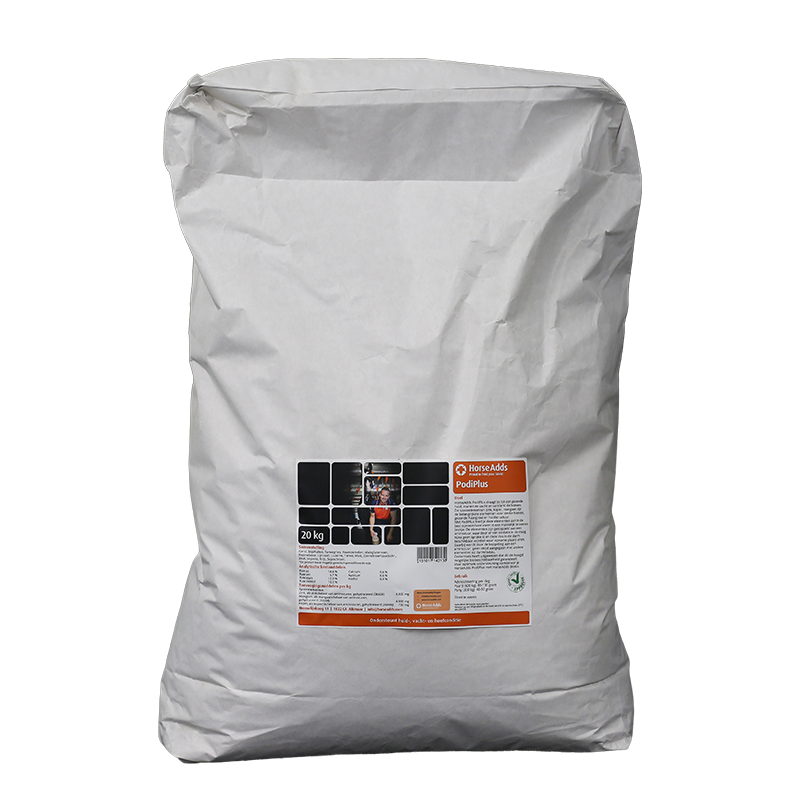 We raden aan om HorseAdds PodiPlus te gebruiken met HorseAdds Biotine. Onze biotine supplement voor paarden bevat een hoge dosis biotine, dat onder andere bijdraagt aan een sterke hoefwand. Aan het voer toegevoegde biotine kan opgenomen worden in de dunne darm. Een sterkere hoefwand kan het resultaat zijn. Doseren naar 1:10 verhouding ten opzichte van Podiplus. Het Kees Alblas Hoefpakket is naar deze verhouding samengesteld.